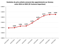 Rétrospective de l’évolution du prix/m² annoncé (FAI) sur Ville d'Annecy depuis 2014.